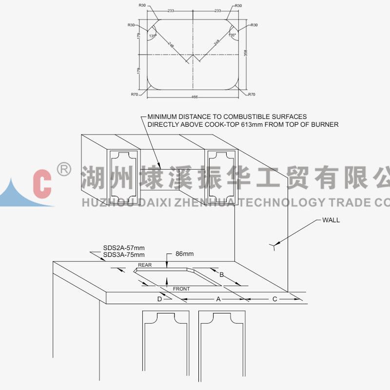 额定热负荷:6.70MJ / HR 气流压力:2.75KPa 尺寸(长*宽*高):478mm * 369mm * 87mm 孔径(长*宽*倒角):466mm * 358mm * R70 质地:不锈钢,钢化玻璃燃烧器炉子号:两种点火方式:电子脉冲式进气方式:上风